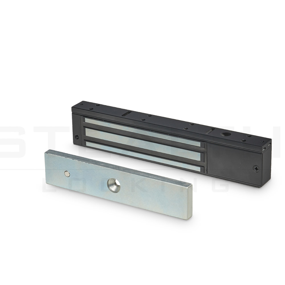 Slim Black Magnetic lock with both lock and door monitoring 12/24vdc
